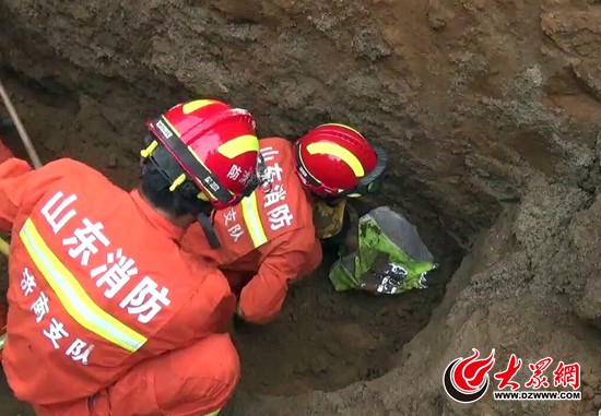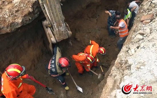 根據第一名被困人員口述,救援人員對第二名被困人員的大概位置進行了確認。現場指揮部命令立即利用挖掘機對第二名被困人員埋壓處進行由淺到深挖掘,同時拓寬現場作業面。下午13時40分許,挖掘現場終于發現了第二名被困者的頭盔。消防人員立刻徒手清理被困者頭部的濕土,同時,現場醫護人員立即對其進行救治,經120急救人員確認,第二名被困者生命跡象較弱,且口鼻處有不少血跡。
