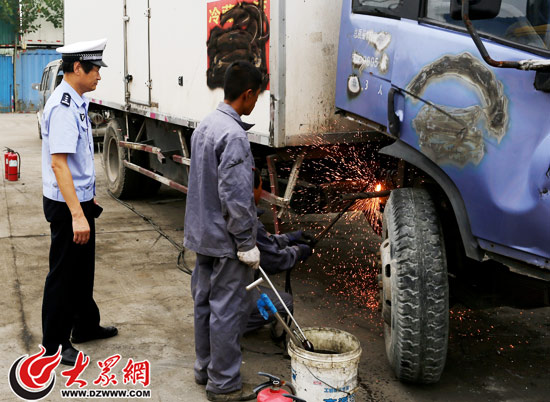 市中區車管分所民警張元才監督銷毀報廢貨車。