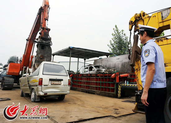 大眾網濟南8月2日訊 今天上午,濟南交警市中車管分所民警來到華嘉機動車報廢中心,監督銷毀了30多輛前期查處、催促報廢的汽車。民警介紹,機動車注銷有嚴格程序,因車輛轉賣等原因找不到車的無法辦理注銷,如果買賣后不過戶一旦發生交通事故,原車主也將承擔連帶責任。