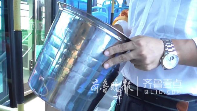 據(jù)98路公交車司機盧師傅介紹,6日中午11點多,一名老太太上車后徑直坐在了垃圾桶旁邊的座位上,上車沒過兩站,老人就準(zhǔn)備下車。在起身離開座位時,老人順手把垃圾桶拎起來,用手提袋掩護,下了公交車。