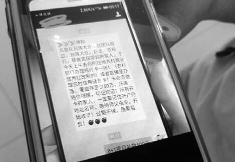從業多年的大堂經理察覺出了異常。“正常來辦卡的老年人都會說辦卡用途,一般也不會要求開通短信提醒。”大堂經理說,這時她想起銀行前不久下發的通知,警惕為了所謂民族大業而開卡受騙的老年人。于是大堂經理拿出銀行的通知給老人看,并加以勸導。