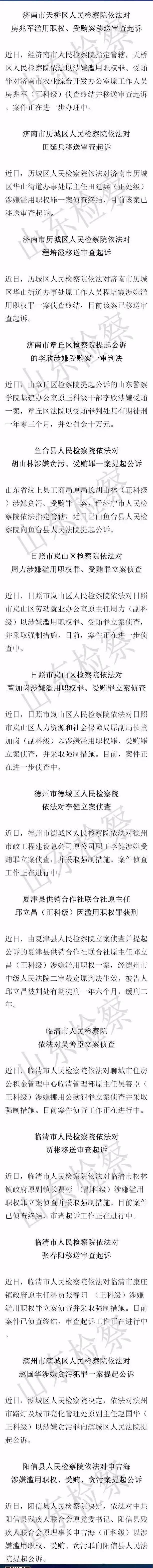 濟南濟寧日照德州聊城濱州等地14人涉嫌職務犯罪被追究