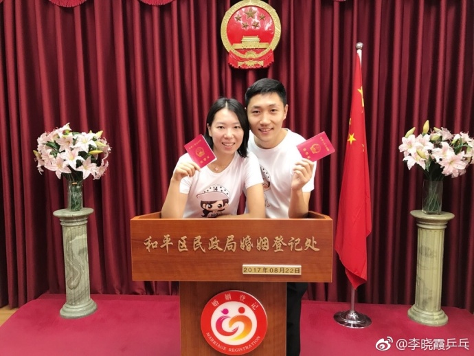 8月22日,乒乓球奧運冠軍李曉霞在微博上宣布與男友翟一鳴正式領證結婚。