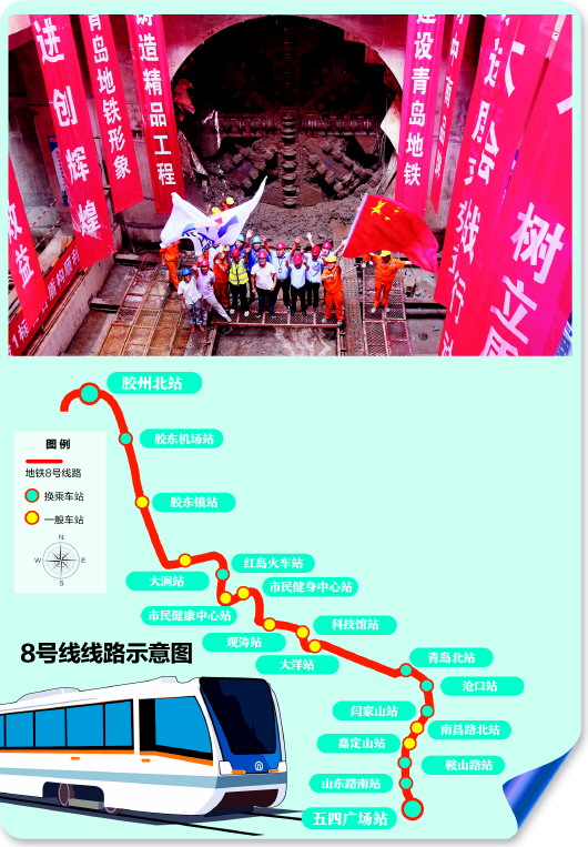 據了解,青島地鐵8號線作為聯系新機場、北部城區、主城區的青島大動脈,地下區間最高行車速度達到120公里/小時,自五四廣場至膠東機場僅為50分鐘,對北部市域的飛躍發展和促成“三帶一軸、三灣三城、組團式”城市發展戰略的實施有重大意義。