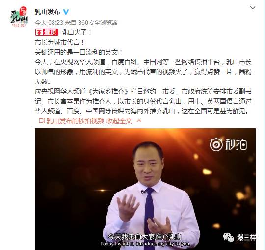 8月22日晚,爆三樣從乳山市官方獲悉,宮市長(zhǎng)這幾天正在出差,并不知道自己已成“網(wǎng)紅”。宮本杲本人為人低調(diào),但推介城市不遺余力。