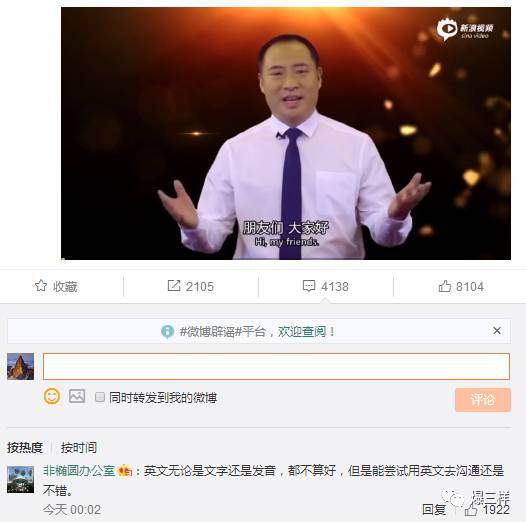 這條視頻昨晚凌晨發(fā)到微博后,不到1天時(shí)間就在網(wǎng)上火了。有網(wǎng)友評(píng)論說(shuō),雖然英文無(wú)論是文字還是發(fā)音都不算最好,但是能?chē)L試用英文去溝通還是不錯(cuò)。還有網(wǎng)友留言說(shuō),自己在山東生活了22年竟不知道乳山,多虧這條視頻,為這個(gè)市長(zhǎng)點(diǎn)贊!