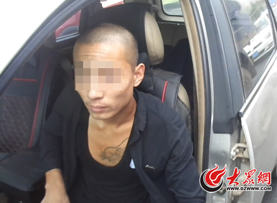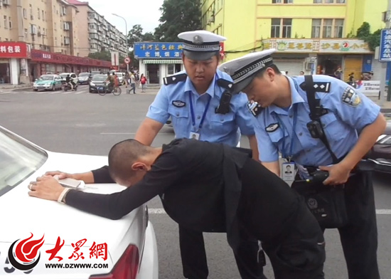 交警對無證駕駛、瘋狂闖卡的紋身男肖某進(jìn)行搜身檢查。