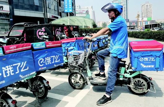 一外賣小哥將送餐車輛停進專用泊位,周邊快遞外賣車輛亂停放的現象明顯減少。