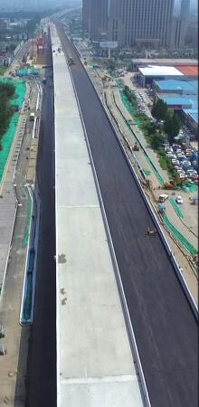 “從電建路到奧體中路,僅剩下高架橋梁一層瀝青面層施工了。”與此同時,高架橋面第一層瀝青由西向東正在攤鋪,已經鋪到鳳凰路附近。路燈正在招標過程中,聲屏障已經招標完成,現在正積極備貨。