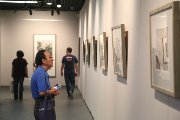 書畫愛好者駐足欣賞舒建新作品。
