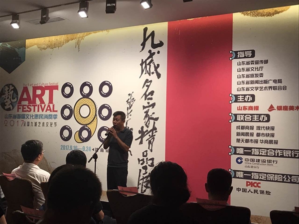 9月16日,由中共山東省委宣傳部、山東省文化廳、山東省旅發(fā)委、山東省新聞出版廣電局、山東省文學藝術(shù)界聯(lián)合會等部門指導,由山東商報、成都商報、新聞晨報、現(xiàn)代快報、都市快報、楚天都市報、華商晨報等聯(lián)合主辦,由建設銀行山東省分行、中國人民保險公司等單位協(xié)辦的“首屆山東文化惠民主題活動——2017全國九城藝術(shù)文化節(jié)”在濟南隆重開幕。