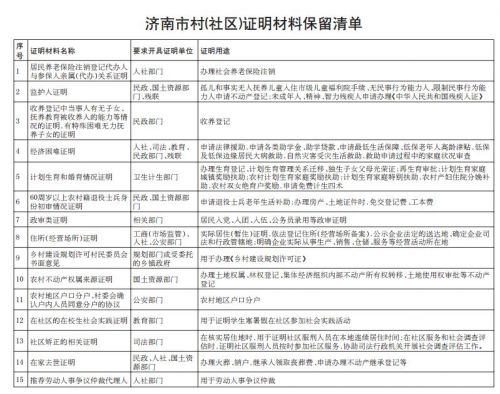 據(jù)了解,在全面清理摸底過程中,10個縣區(qū)和高新區(qū)管委會、南山管委會共上報村(社區(qū))證明材料1303項,平均每縣區(qū)110項左右。市編辦有關(guān)負責(zé)人介紹,濟南市確定了以方便群眾辦事為原則的清理思路,在市級權(quán)限內(nèi),凡沒有法律法規(guī)依據(jù)的一律取消,能通過個人有效證照證明的一律取消,能通過申請人書面承諾解決的一律取消,能通過部門之間信息共享解決的一律取消。按照證明用途,最后分類匯總為目前的15項(見下表)。