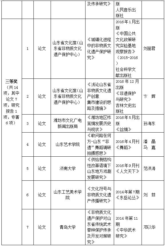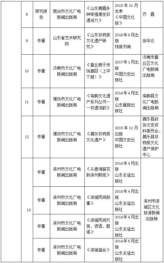 山東省非物質(zhì)文化遺產(chǎn)保護(hù)優(yōu)秀科研成果評(píng)選結(jié)果