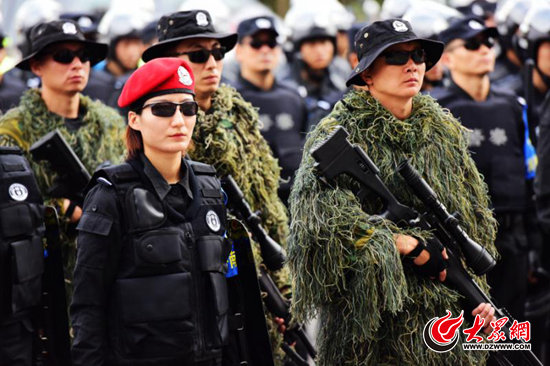 啟動儀式上,身著偽裝服的狙擊手英姿颯爽,引人注目。