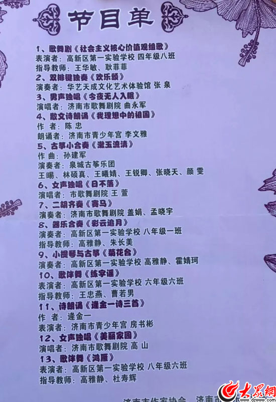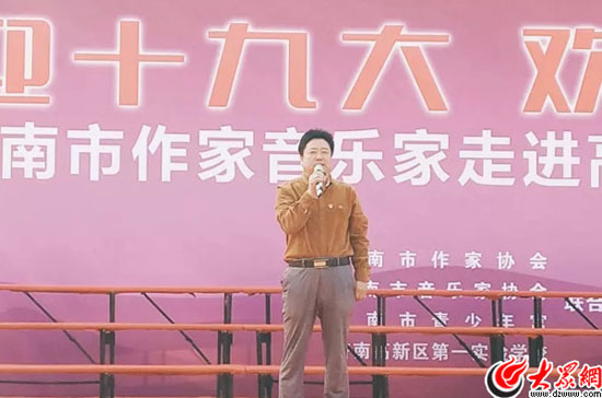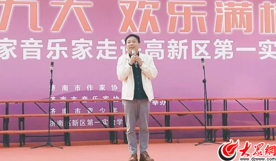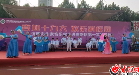 大眾網訊 金秋十月,在十九大即將召開之際,由濟南市作家協會、濟南市音樂家協會、濟南市青少年宮、濟南高新區第一實驗學校聯合舉辦的“喜迎十九大歡樂滿校園——濟南市作家音樂家走進高新區第一實驗學校文藝演出”于10月12日下午三點,在高新區第一實驗學校舉行,作家音樂家與全體師生齊聚校園,用詩歌歌頌祖國,用音樂譜出美好、用舞蹈舞出希望。弘揚社會主義核心價值觀,為國家發展助力,為民族進步鑄魂。