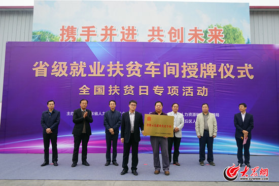 10月17日,山東省公共就業和人才服務中心開展山東省暨濟南市“就業扶貧行動日”活動,并向山東日月升噸包有限公司授牌“省級示范就業扶貧車間”。