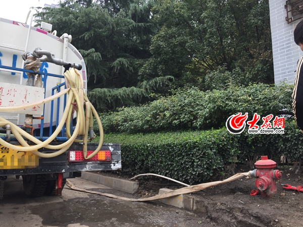 17日,記者跟隨稽查員來到一處位于市中區青年東路的消防栓處,發現一條長長的水帶穿過綠化帶,接在馬路邊的市政消防栓上,一輛灑水車正在“接水”。據濟南水務稽查員介紹,城市灑水降塵、園林綠化用消防栓里的水,必須經水務部門同意、辦理正規的手續才可以使用。
