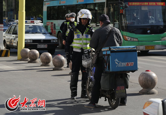 1小時之內,民警共查處12起快遞員、送餐員交通違法