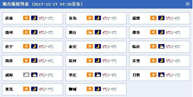 夜間最低氣溫:魯西北、魯中山區和半島內陸地區-6℃左右,其他地區-3℃左右。