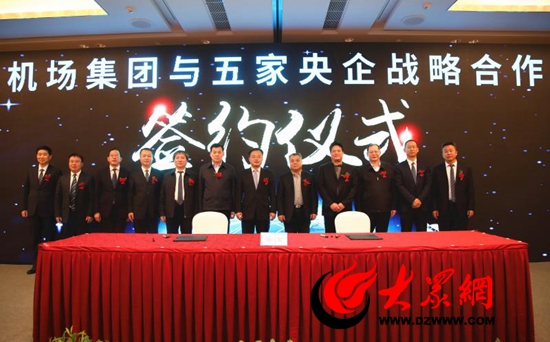 山東機場集團與5家央企在濟南簽署戰略合作協議暨濟南國際機場旅客服務中心項目意向合作協議。
