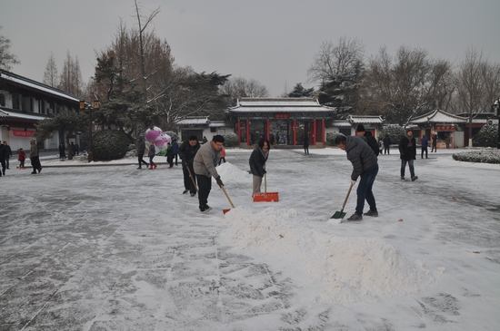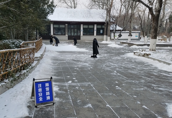 濟南各公園風景區及時啟動安全應急預案,積極清雪除冰