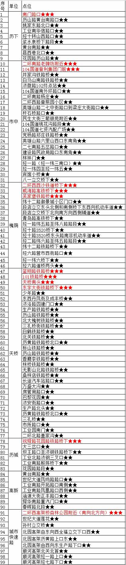 2018版濟南市區易積水路段