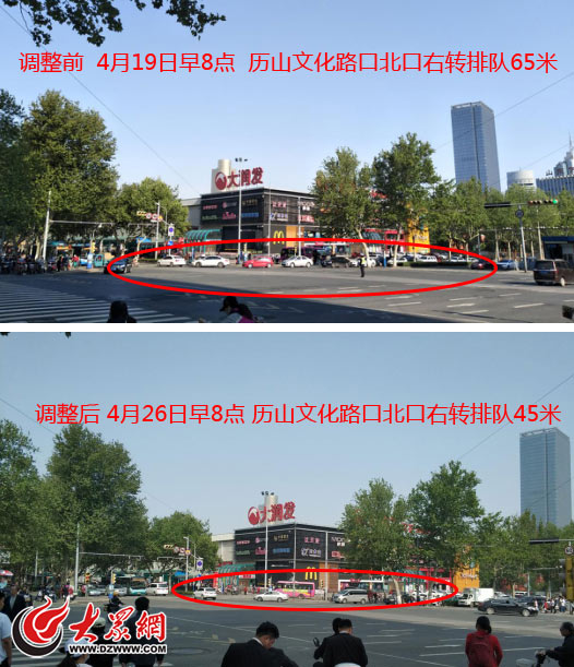 歷山路文化路路口信號配時調(diào)整前后對比