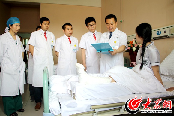 白衣天使和堅強的法院書記員黃姿杉聊天。黃姿杉,開發區人民法院書記員,因左足舟骨骨折在菏澤博愛醫院接受治療。