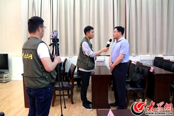 曹縣大集鎮(zhèn)黨委書記王福成(左1)接受大眾網(wǎng)記者采訪