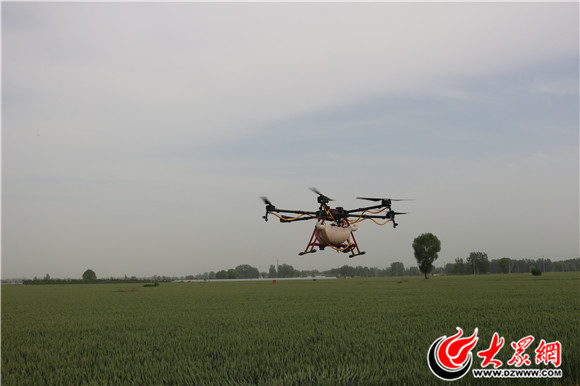大眾網菏澤5月9日訊(通訊員 李廣勇 見習記者 張柔)近日,在定陶區南王店鎮宋莊村的農田里,農用植保無人機通過遠程遙控,沿著麥田低空飛行噴灑農藥,讓圍觀的農民大開眼界。
