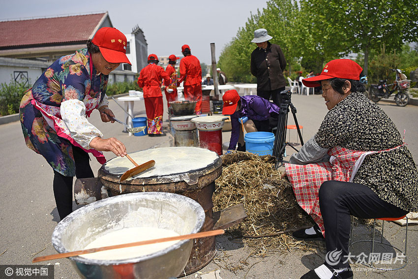 村民在利用鐵鏊子烙煎餅   圖片作者:陳為峰