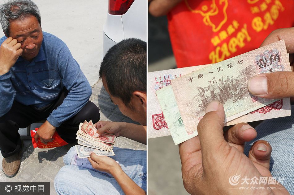 當日,在山東無棣古玩大集上,一名50多歲的大叔在一個古錢幣攤上,向小販出售自己珍藏多年的民國老票子和老版人民幣,并最終把自己珍藏20多年的3張第三代紙幣以20元的低價賣給了攤主。