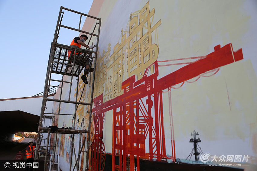 6月14日,走進日照港,一幅幅“中國夢”、“港口宏”“社會主義核心價值觀”的宣傳畫,一面面圖文并茂的彩繪墻,猶如一陣陣文明清風(fēng)撲面而來。細心的職工會發(fā)現(xiàn),原本老舊的墻壁上畫著一幅幅精致的壁畫,讓人仿佛置身美麗港口家園,令人賞心悅目,成為港口一道亮麗風(fēng)景線。