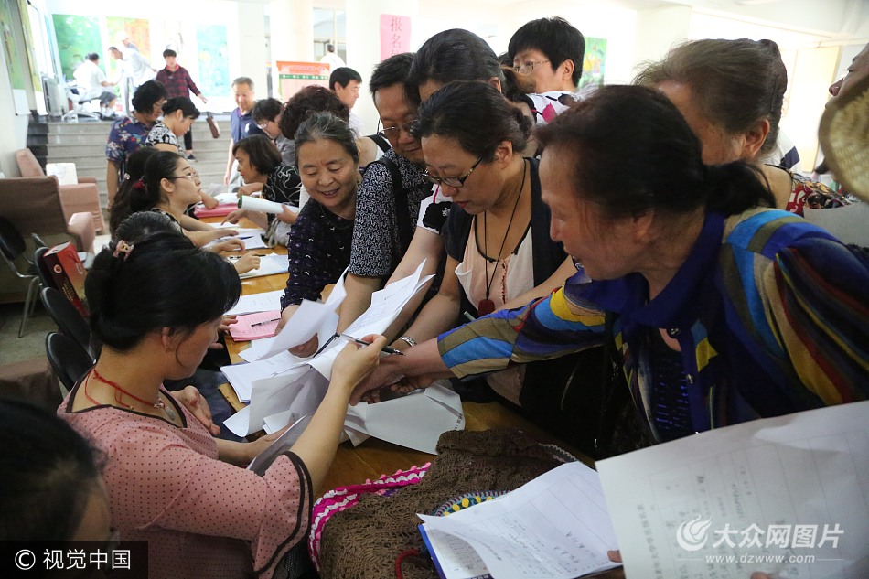 6月19日,泰安市老年大學2017級招生報名開始。上午8時多,老年大學報名大廳內排起長隊,不少老人一下子報好幾個班。