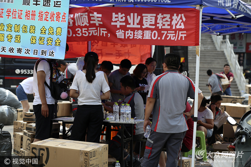 6月29日,又是一年畢業(yè)季,在聊城大學(xué)校園內(nèi),不少畢業(yè)生收拾行李,郵寄包裹。當(dāng)日,畢業(yè)生選擇用快遞的方式將行李寄送回家,各大快遞公司也瞄準(zhǔn)畢業(yè)季的商機(jī),擺開陣勢(shì),打出“親情價(jià)”“超低價(jià)”優(yōu)惠,低價(jià)吸引不少畢業(yè)生將畢業(yè)包裹寄送回家,包裹堆積在校園內(nèi),好似一座小山,畢業(yè)季變成了“畢業(yè)寄”。
