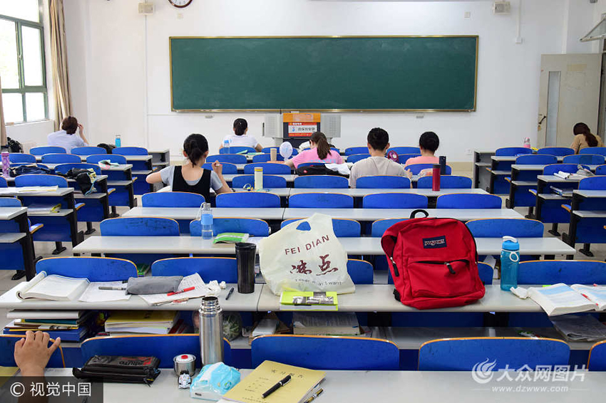 7月12日,高校暑期來臨,考研族提前打響“搶座大戰(zhàn)”。圖為青島某高校考研自習室內(nèi)留校復習的學生。