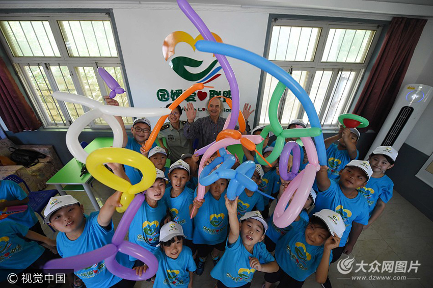 7月25日,煙臺,公安邊防支隊民警聯合外教老師組織轄區留守兒童開展手工作業。