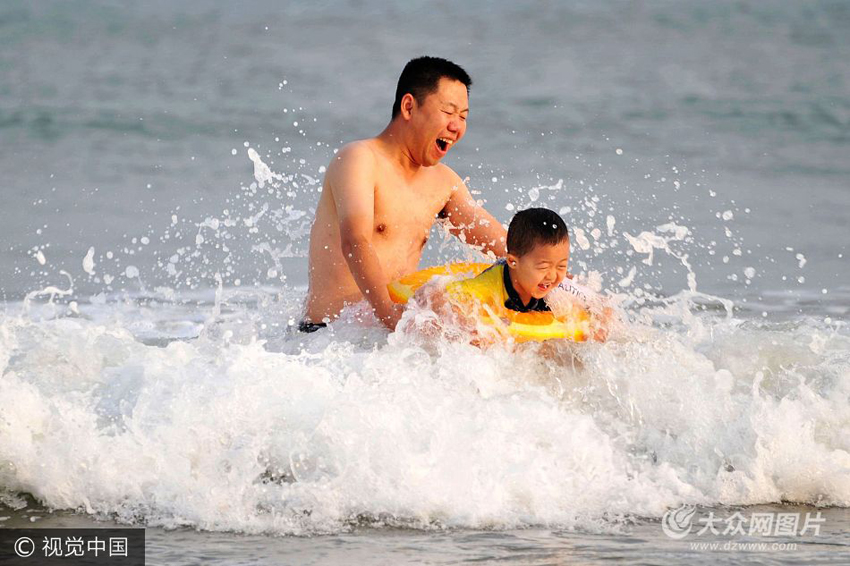 受臺風(fēng)影響,青島從15日開始關(guān)閉的六大海水浴場依然未對外開放,雖然臺風(fēng)已經(jīng)過境,但海面上還是刮起了5-6級大風(fēng),海面浪高超過1.5米。在青島金沙灘海水浴場,部分游客不聽廣播和浴場工作人員勸阻,下海游泳,與海中巨浪進(jìn)行搏斗,尋求樂趣。浴場工作人員告誡說,海水中的大浪威力巨大,一旦被海浪打翻容易嗆水,造成危險。