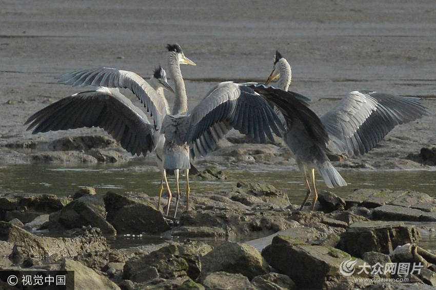 青島: 蒼鷺結群“貼秋膘” 上演“動手動腳”追逐大戲 (/8)