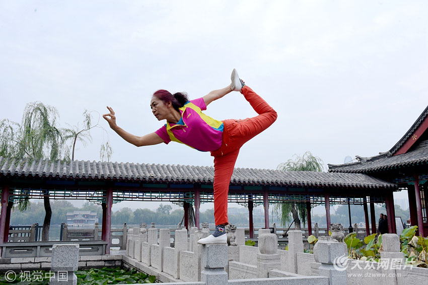 10月26日,在濟南大明湖,有一位年過5旬的大媽,她能在雙杠、天梯上表演出各種高難度動作,還能在巴掌大的石柱上表演金雞獨立、童子拜佛、白鶴亮翅、孔雀高飛等高難度的動作。這位大媽姓魏,名叫魏彩紅,魏大媽說這些動作他已經(jīng)練了四五年,不管春夏秋冬嚴寒酷暑都堅持鍛煉,站在石柱上主要是克服恐懼,掌握平衡,樹立自信,挑戰(zhàn)自我。