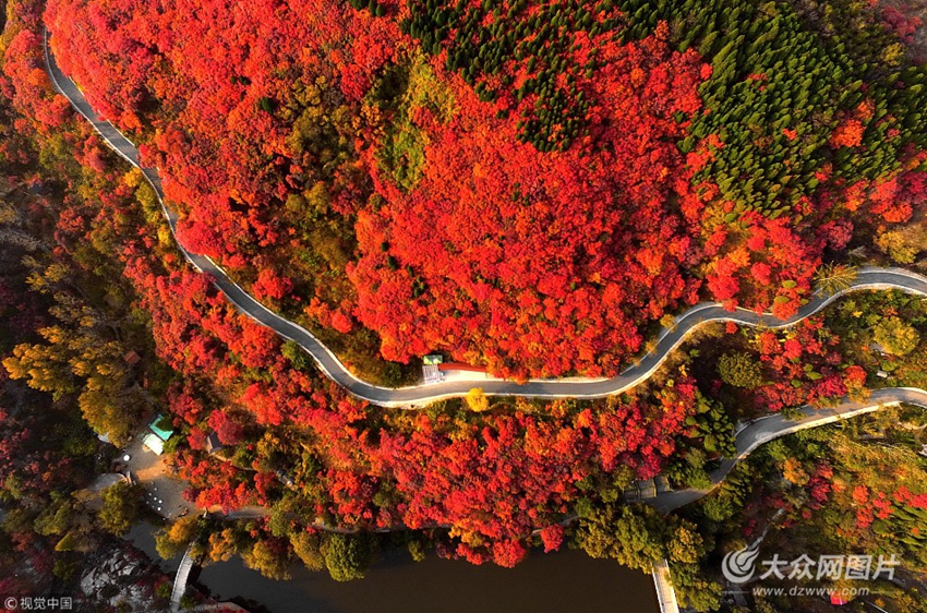 2017年10月30日,濟南南部山區紅葉谷的4000多畝黃櫨紅遍,形成巨型紅葉欣賞區。