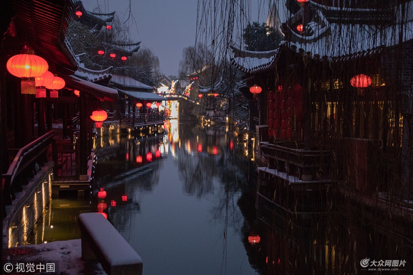 2018年1月4日,山東棗莊,臺兒莊古城雪景。