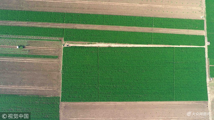2018年11月14日,山東濰坊,初冬時節(jié),航拍青州市何官鎮(zhèn)2萬余畝胡蘿卜喜獲豐收。