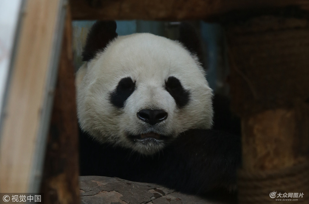 2018年12月4日,濟南,大熊貓在動物園內的熊貓館里悠閑自在,時而玩塑料管、時而玩球、時而賣萌,十分討人歡喜。
