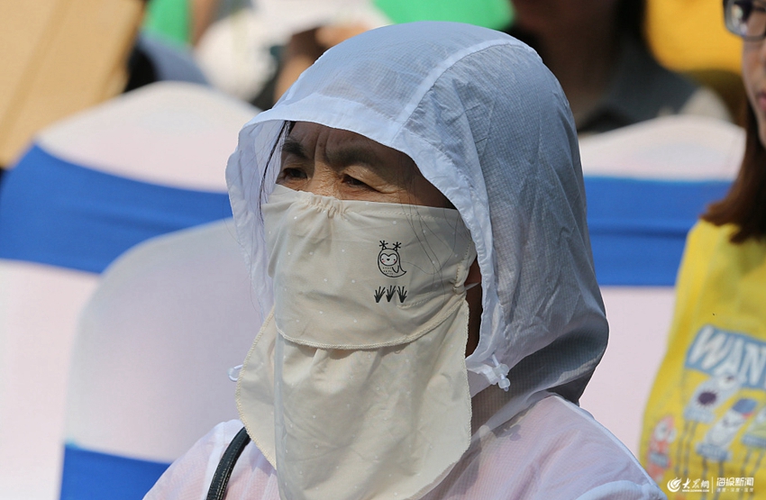 2019年5月12日,山東省濰坊市,市民們紛紛全副武裝抵御高溫天氣。連日來(lái),山東省濰坊市區(qū)氣溫持續(xù)攀升,當(dāng)日最高氣溫達(dá)33攝氏度,許多外出的市民紛紛利用紙板、防曬服、雨傘、口罩等物品進(jìn)行防曬。