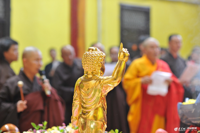 2019年5月12日,山東濟(jì)寧,鄒城晚照寺舉辦浴佛節(jié)法會(huì),眾多市民參與誦經(jīng)、撞鐘、放生的活動(dòng)。
