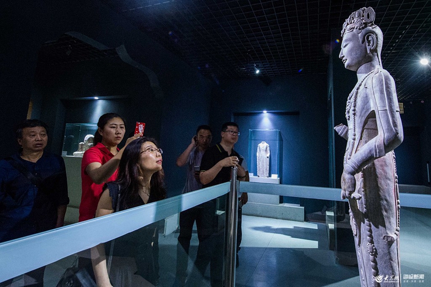 2019年5月16日,山東濰坊,觀眾在青州市博物館內(nèi)參觀藏品,感受歷史的魅力,迎接5月18日國際博物館日的到來。