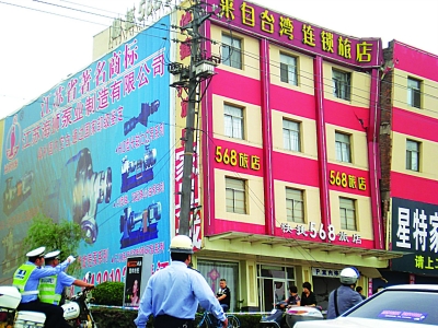 發生傾斜的樓房,位于靖江市南環姜八路西側,樓房呈南北走向,目前為“快捷568旅店”。昨天上午,記者趕到現場看到,“快捷568旅店”共四層,最底層是門面房,樓面上方寫著“來自臺灣連鎖旅店”,與快捷568旅店北側相接的是“星特家具城”。從側面看,“快捷568旅店”與“星特家具城”已經完全錯開,“后仰”大概20厘米左右;從正面看,樓面最上方的“來自臺灣連鎖旅店”中的“店”字已被向外“折起”,與其他幾個字完全不在一個平面,“店”字下方一大塊水泥搖搖欲墜。在樓房南側面記者看到,事發四層樓建在一河堤上,相比于東側地基,西側已經明顯下沉。