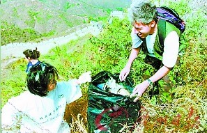 就在兩天前,孫寶利又去了一次箭扣長城的將軍守關(guān),在原本打掃一新的城墻邊又看到了紙屑、空瓶、塑料盒!叭釉陂L城上的大都是這樣的食品垃圾。游客們光顧著自己玩得痛快,這些廢物隨手一扔完事!睂O寶利說,最可恨的是,有些人把垃圾扔到城墻下,掛在荊棘上!翱粗貏e扎眼,想撿卻又夠不到。干著急!”