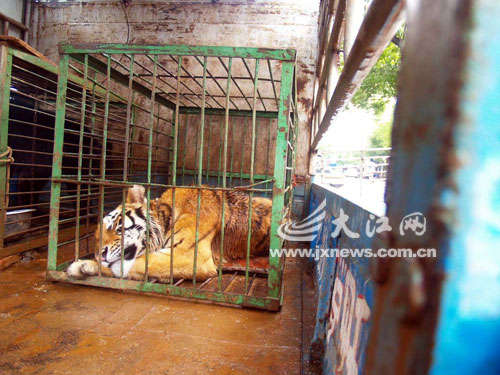 傷人老虎被裝運上車。